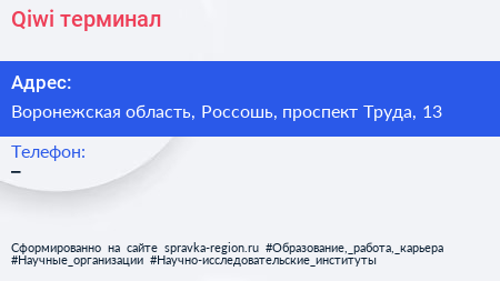 Qiwi, терминал по адресу Воронежская область, Россошь, проспект Труда, 13 в дальнейшем Организация, размещена в следующих категориях: