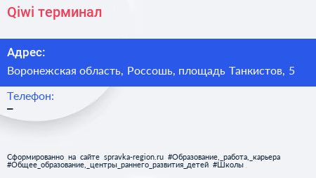 Qiwi, терминал по адресу Воронежская область, Россошь, площадь Танкистов, 5 в дальнейшем Организация, размещена в следующих категориях:
