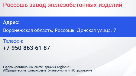 Россошь, завод железобетонных изделий по адресу Воронежская область, Россошь, Донская улица, 7 в дальнейшем Организация, размещена в следующих категориях: