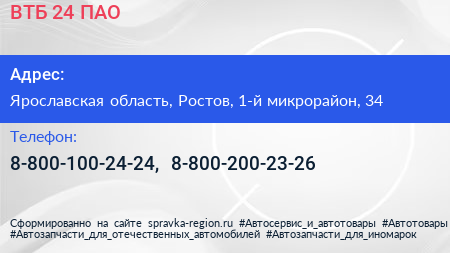 ВТБ 24, ПАО по адресу Ярославская область, Ростов, 1-й микрорайон, 34 в дальнейшем Организация, размещена в следующих категориях: