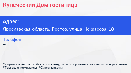 Купеческий Дом, гостиница по адресу Ярославская область, Ростов, улица Некрасова, 18 в дальнейшем Организация, размещена в следующих категориях: