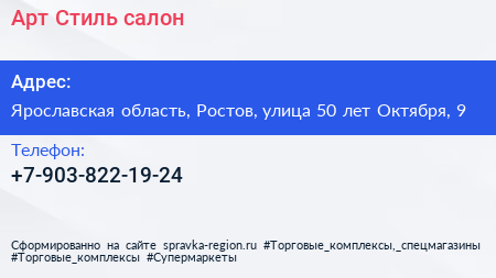 Арт Стиль, салон по адресу Ярославская область, Ростов, улица 50 лет Октября, 9 в дальнейшем Организация, размещена в следующих категориях: