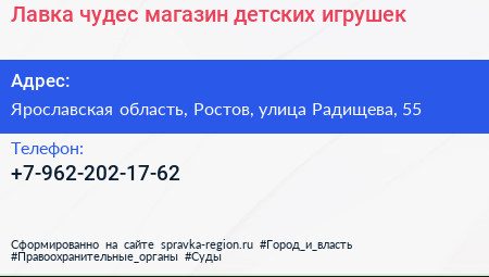 Лавка чудес, магазин детских игрушек по адресу Ярославская область, Ростов, улица Радищева, 55 в дальнейшем Организация, размещена в следующих категориях: