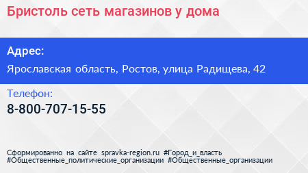 Бристоль, сеть магазинов у дома по адресу Ярославская область, Ростов, улица Радищева, 42 в дальнейшем Организация, размещена в следующих категориях: