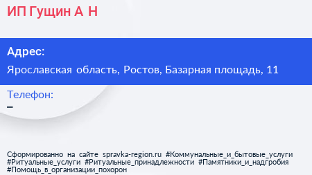 ИП Гущин А.Н. по адресу Ярославская область, Ростов, Базарная площадь, 11 в дальнейшем Организация, размещена в следующих категориях: