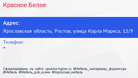 Красное & Белое по адресу Ярославская область, Ростов, улица Карла Маркса, 12/9 в дальнейшем Организация, размещена в следующих категориях: