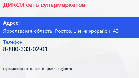 ДИКСИ, сеть супермаркетов по адресу Ярославская область, Ростов, 1-й микрорайон, 4Б в дальнейшем Организация, размещена в следующих категориях: