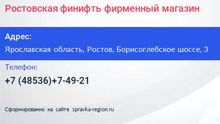Ростовская финифть, фирменный магазин по адресу Ярославская область, Ростов, Борисоглебское шоссе, 3 в дальнейшем Организация, размещена в следующих категориях: