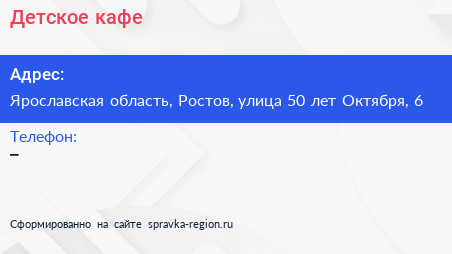 Детское кафе по адресу Ярославская область, Ростов, улица 50 лет Октября, 6 в дальнейшем Организация, размещена в следующих категориях: