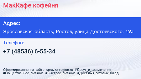 МакКафе, кофейня по адресу Ярославская область, Ростов, улица Достоевского, 19а в дальнейшем Организация, размещена в следующих категориях: