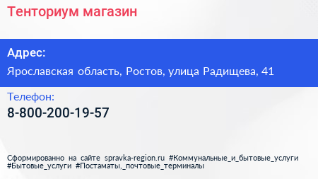 Тенториум, магазин по адресу Ярославская область, Ростов, улица Радищева, 41 в дальнейшем Организация, размещена в следующих категориях: