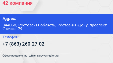 42, компания по адресу 344058, Ростовская область, Ростов-на-Дону, проспект Стачки, 79 в дальнейшем Организация, размещена в следующих категориях: