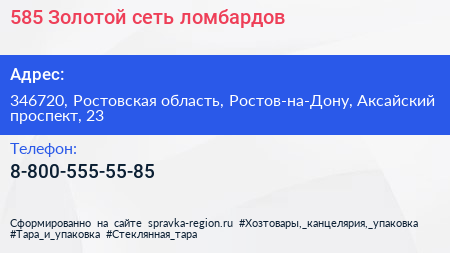 585*Золотой, сеть ломбардов по адресу 346720, Ростовская область, Ростов-на-Дону, Аксайский проспект, 23 в дальнейшем Организация, размещена в следующих категориях: