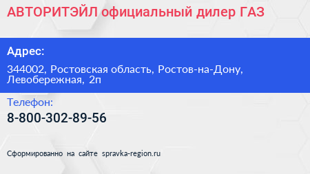 АВТОРИТЭЙЛ, официальный дилер ГАЗ по адресу 344002, Ростовская область, Ростов-на-Дону, Левобережная, 2п в дальнейшем Организация, размещена в следующих категориях: