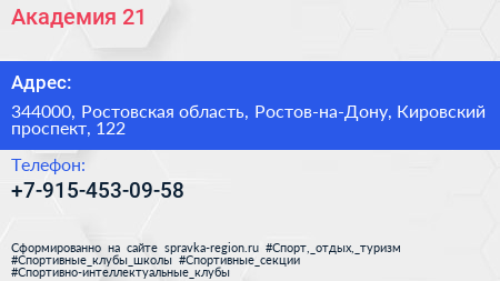 Академия 21 по адресу 344000, Ростовская область, Ростов-на-Дону, Кировский проспект, 122 в дальнейшем Организация, размещена в следующих категориях: