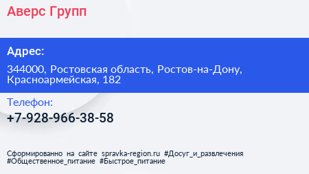 Аверс Групп по адресу 344000, Ростовская область, Ростов-на-Дону, Красноармейская, 182 в дальнейшем Организация, размещена в следующих категориях: