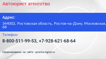 Автоюрист, агентство по адресу 344002, Ростовская область, Ростов-на-Дону, Московская, 68 в дальнейшем Организация, размещена в следующих категориях: