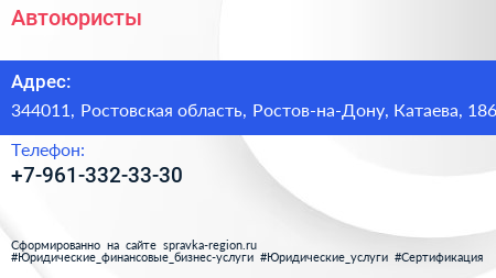 Автоюристы по адресу 344011, Ростовская область, Ростов-на-Дону, Катаева, 186 в дальнейшем Организация, размещена в следующих категориях: