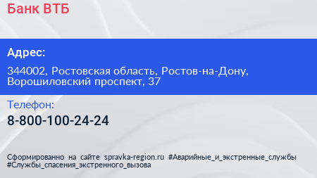 Банк ВТБ по адресу 344002, Ростовская область, Ростов-на-Дону, Ворошиловский проспект, 37 в дальнейшем Организация, размещена в следующих категориях: