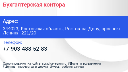 Бухгалтерская контора по адресу 344023, Ростовская область, Ростов-на-Дону, проспект Ленина, 221/20 в дальнейшем Организация, размещена в следующих категориях: