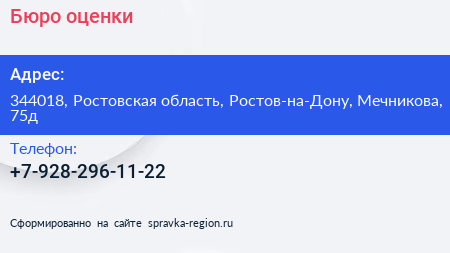 Бюро оценки по адресу 344018, Ростовская область, Ростов-на-Дону, Мечникова, 75д в дальнейшем Организация, размещена в следующих категориях: