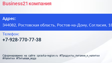 Business21, компания по адресу 344082, Ростовская область, Ростов-на-Дону, Согласия, 18 в дальнейшем Организация, размещена в следующих категориях: