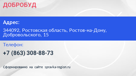 ДОБРОБУД по адресу 344092, Ростовская область, Ростов-на-Дону, Добровольского, 15 в дальнейшем Организация, размещена в следующих категориях: