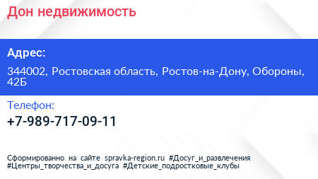 Дон недвижимость по адресу 344002, Ростовская область, Ростов-на-Дону, Обороны, 42Б в дальнейшем Организация, размещена в следующих категориях:
