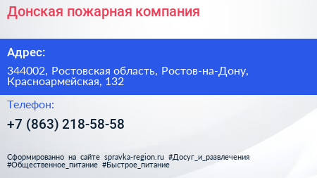 Донская пожарная компания по адресу 344002, Ростовская область, Ростов-на-Дону, Красноармейская, 132 в дальнейшем Организация, размещена в следующих категориях: