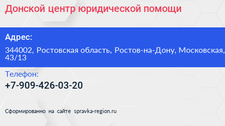 Донской центр юридической помощи по адресу 344002, Ростовская область, Ростов-на-Дону, Московская, 43/13 в дальнейшем Организация, размещена в следующих категориях: