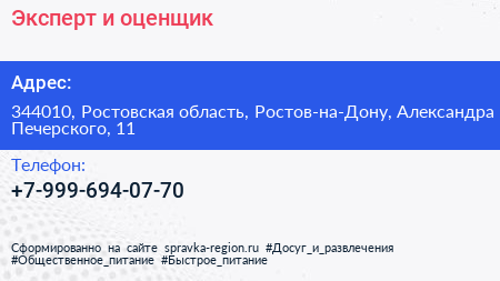 Эксперт и оценщик по адресу 344010, Ростовская область, Ростов-на-Дону, Александра Печерского, 11 в дальнейшем Организация, размещена в следующих категориях: