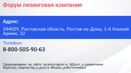 Форум, лизинговая компания по адресу 344029, Ростовская область, Ростов-на-Дону, 1-й Конной Армии, 22 в дальнейшем Организация, размещена в следующих категориях:
