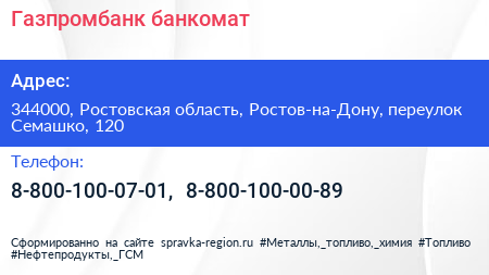 Газпромбанк, банкомат по адресу 344000, Ростовская область, Ростов-на-Дону, переулок Семашко, 120 в дальнейшем Организация, размещена в следующих категориях: