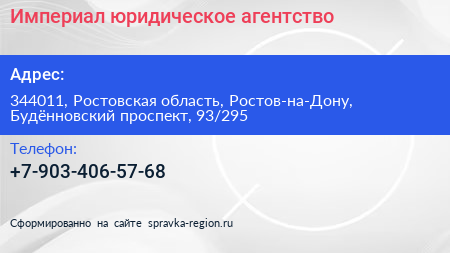 Империал, юридическое агентство по адресу 344011, Ростовская область, Ростов-на-Дону, Будённовский проспект, 93/295 в дальнейшем Организация, размещена в следующих категориях: