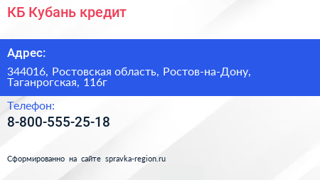КБ Кубань кредит по адресу 344016, Ростовская область, Ростов-на-Дону, Таганрогская, 116г в дальнейшем Организация, размещена в следующих категориях: