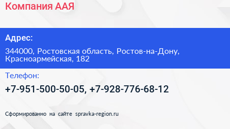 Компания ААЯ по адресу 344000, Ростовская область, Ростов-на-Дону, Красноармейская, 182 в дальнейшем Организация, размещена в следующих категориях: