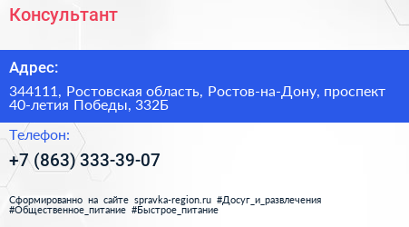 Консультант по адресу 344111, Ростовская область, Ростов-на-Дону, проспект 40-летия Победы, 332Б в дальнейшем Организация, размещена в следующих категориях: