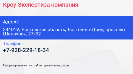 Кроу Экспертиза, компания по адресу 344019, Ростовская область, Ростов-на-Дону, проспект Шолохова, 27/82 в дальнейшем Организация, размещена в следующих категориях: