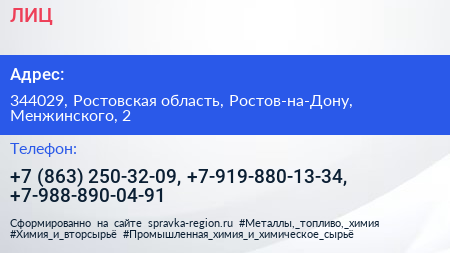 ЛИЦ по адресу 344029, Ростовская область, Ростов-на-Дону, Менжинского, 2 в дальнейшем Организация, размещена в следующих категориях: