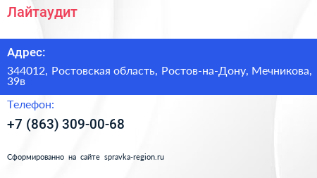 Лайтаудит по адресу 344012, Ростовская область, Ростов-на-Дону, Мечникова, 39в в дальнейшем Организация, размещена в следующих категориях: