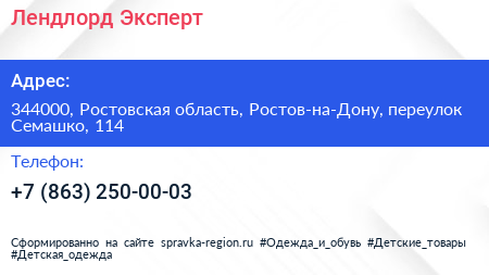 Лендлорд-Эксперт по адресу 344000, Ростовская область, Ростов-на-Дону, переулок Семашко, 114 в дальнейшем Организация, размещена в следующих категориях: