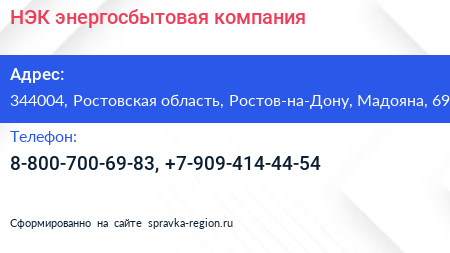 НЭК, энергосбытовая компания по адресу 344004, Ростовская область, Ростов-на-Дону, Мадояна, 69 в дальнейшем Организация, размещена в следующих категориях:
