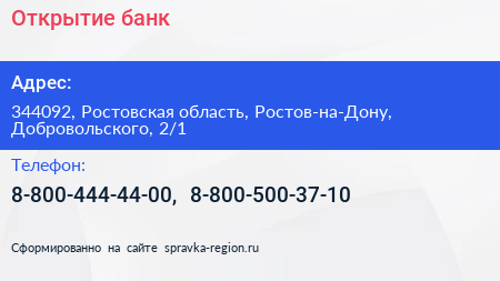 Открытие, банк по адресу 344092, Ростовская область, Ростов-на-Дону, Добровольского, 2/1 в дальнейшем Организация, размещена в следующих категориях: