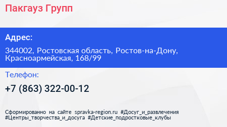 Пакгауз Групп по адресу 344002, Ростовская область, Ростов-на-Дону, Красноармейская, 168/99 в дальнейшем Организация, размещена в следующих категориях: