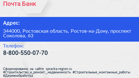 Почта Банк по адресу 344000, Ростовская область, Ростов-на-Дону, проспект Соколова, 63 в дальнейшем Организация, размещена в следующих категориях: