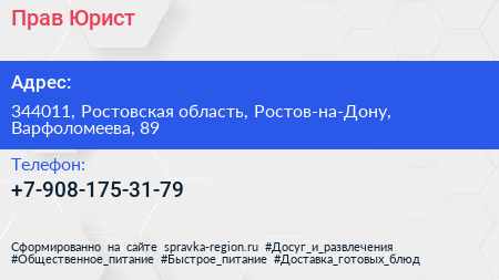 Прав-Юрист по адресу 344011, Ростовская область, Ростов-на-Дону, Варфоломеева, 89 в дальнейшем Организация, размещена в следующих категориях: