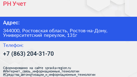 РН-Учет по адресу 344000, Ростовская область, Ростов-на-Дону, Университетский переулок, 131г в дальнейшем Организация, размещена в следующих категориях: