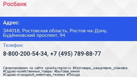 Росбанк по адресу 344018, Ростовская область, Ростов-на-Дону, Будённовский проспект, 94 в дальнейшем Организация, размещена в следующих категориях: