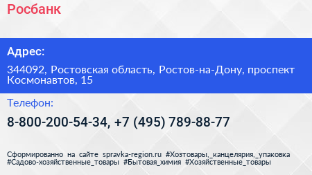 Росбанк по адресу 344092, Ростовская область, Ростов-на-Дону, проспект Космонавтов, 15 в дальнейшем Организация, размещена в следующих категориях: