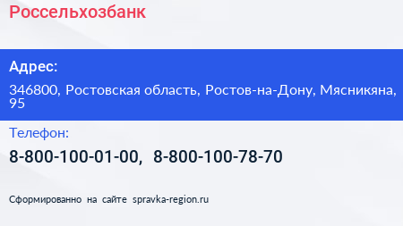 Россельхозбанк по адресу 346800, Ростовская область, Ростов-на-Дону, Мясникяна, 95 в дальнейшем Организация, размещена в следующих категориях: